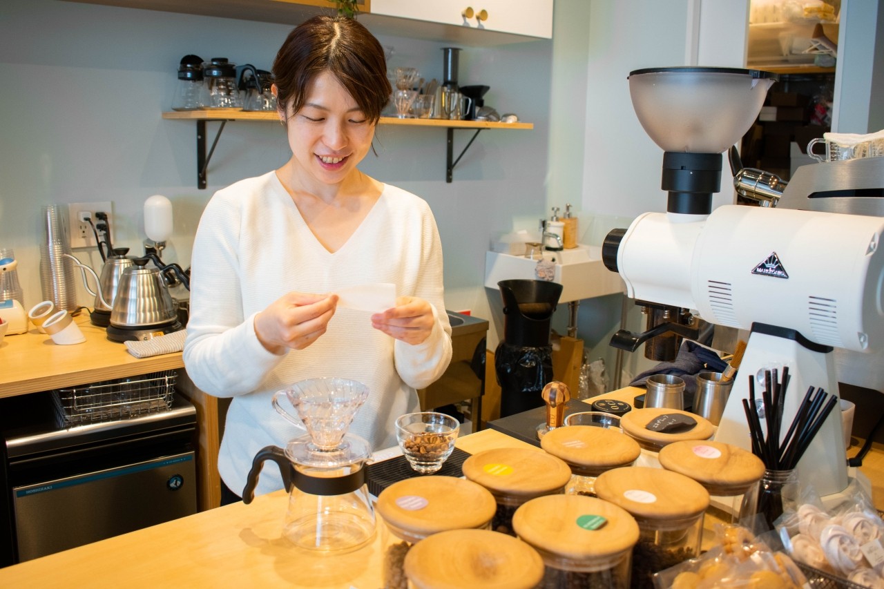 Roast Design Coffee is a specialty coffee shop in Shin-Yurigaoka with the concept of "enjoying coffee". The shop was established by Mikami Hitomi , who placed second in the Japan Aeropress Championship, and Hitomi Ryo, who serves as the coach for Japan at the World Roasting Championships (WCRC). They always have about 10 types of coffee beans available so that you can enjoy the different flavors of each origin. They also offer an original attempt at infusion coffee, where raw beans are soaked in distilled liquor before being roasted, proposing a new way to enjoy coffee.