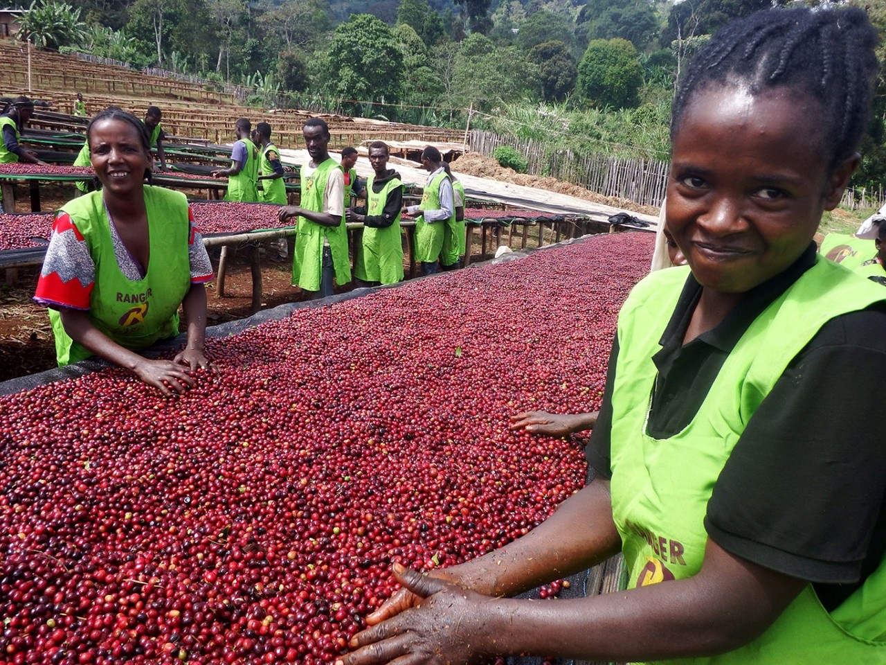 A combination of top roasters and high quality raw beans.