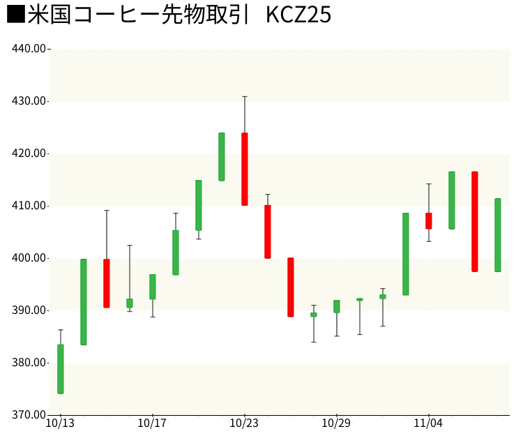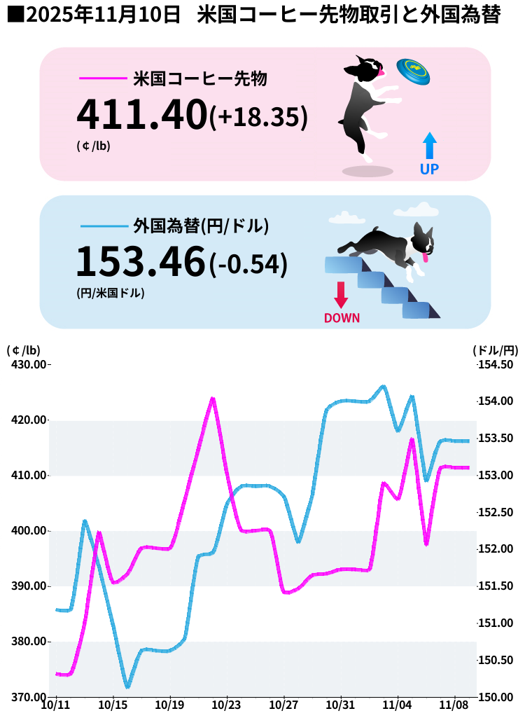 Gráfico del mercado del café de la semana pasada (del 3 al 9 de noviembre de 2025)