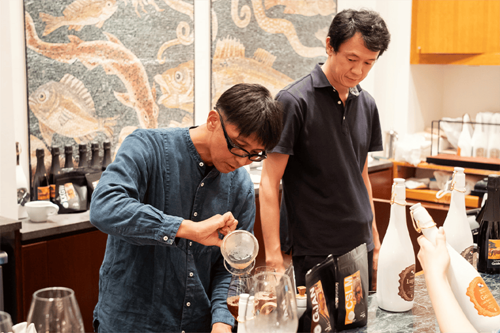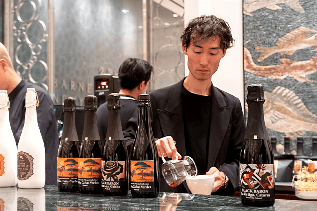 コーヒーの芳醇な香りに包まれながら、ゲストたちはチャンピオン焙煎士やバリスタの技術から生まれる、まさに文化と味覚の新次元を体験した。同じく銀座に店を構える「ラ・メゾン・ド・ビィ」のオーガニックスイーツとともに味わうコーヒーは、単なる飲み物の域を完全に超越していた。