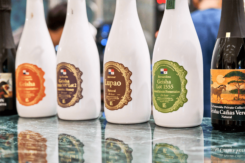 この日、振る舞われた特別な最高峰のパナマコーヒー。BARNEYS CAFE BY CROWD ROASTERの店舗では、200g入りの瓶で販売。カウンターでは、ボトルキープが可能で、好きな時にバリスタが淹れたパナマゲイシャが楽しめるTHE GENESIS UNFOLDS