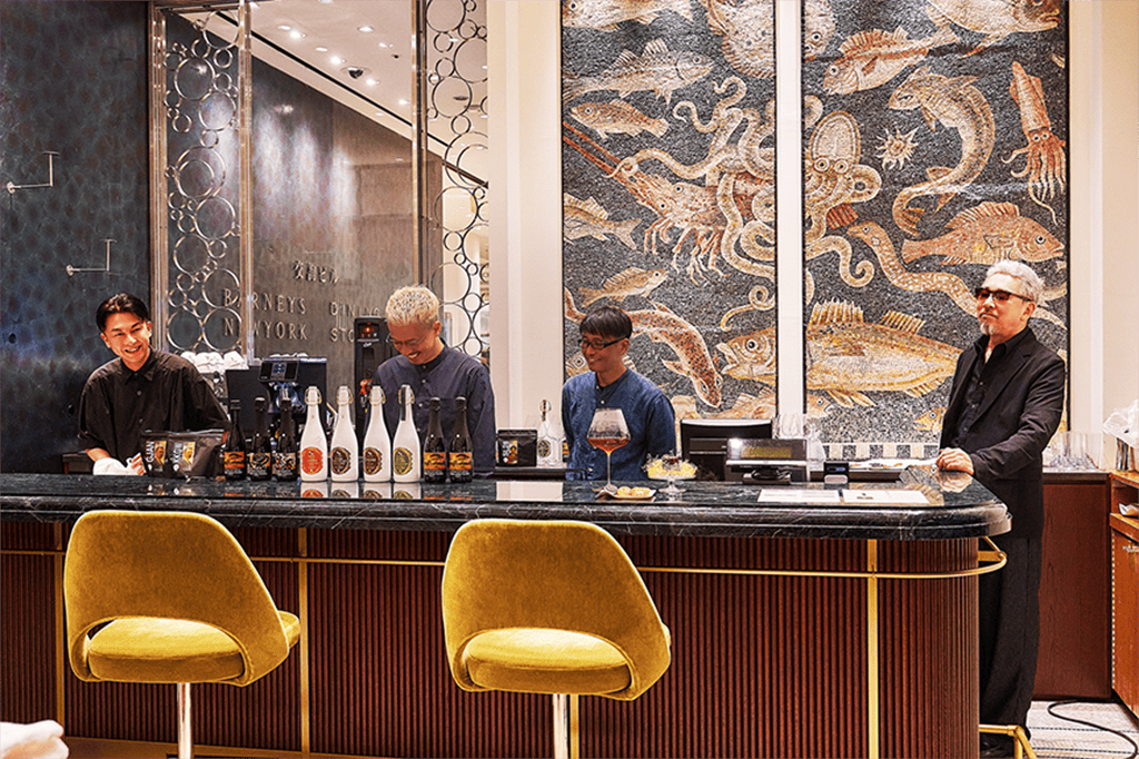 ワイングラスで提供されるコーヒー一杯一杯が、もはやアート。この日、バーニーズ ニューヨーク銀座本店のオープニングを祝うために訪れた芸能人や著名人たちも、その圧倒的なクオリティに言葉を失った。